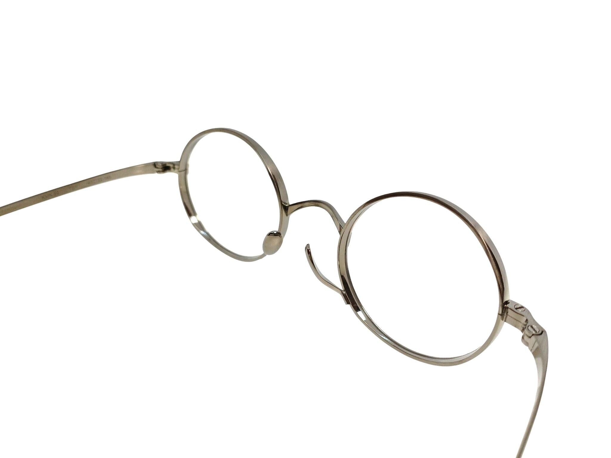 メタルのラウンドフレーム(丸メガネ)。