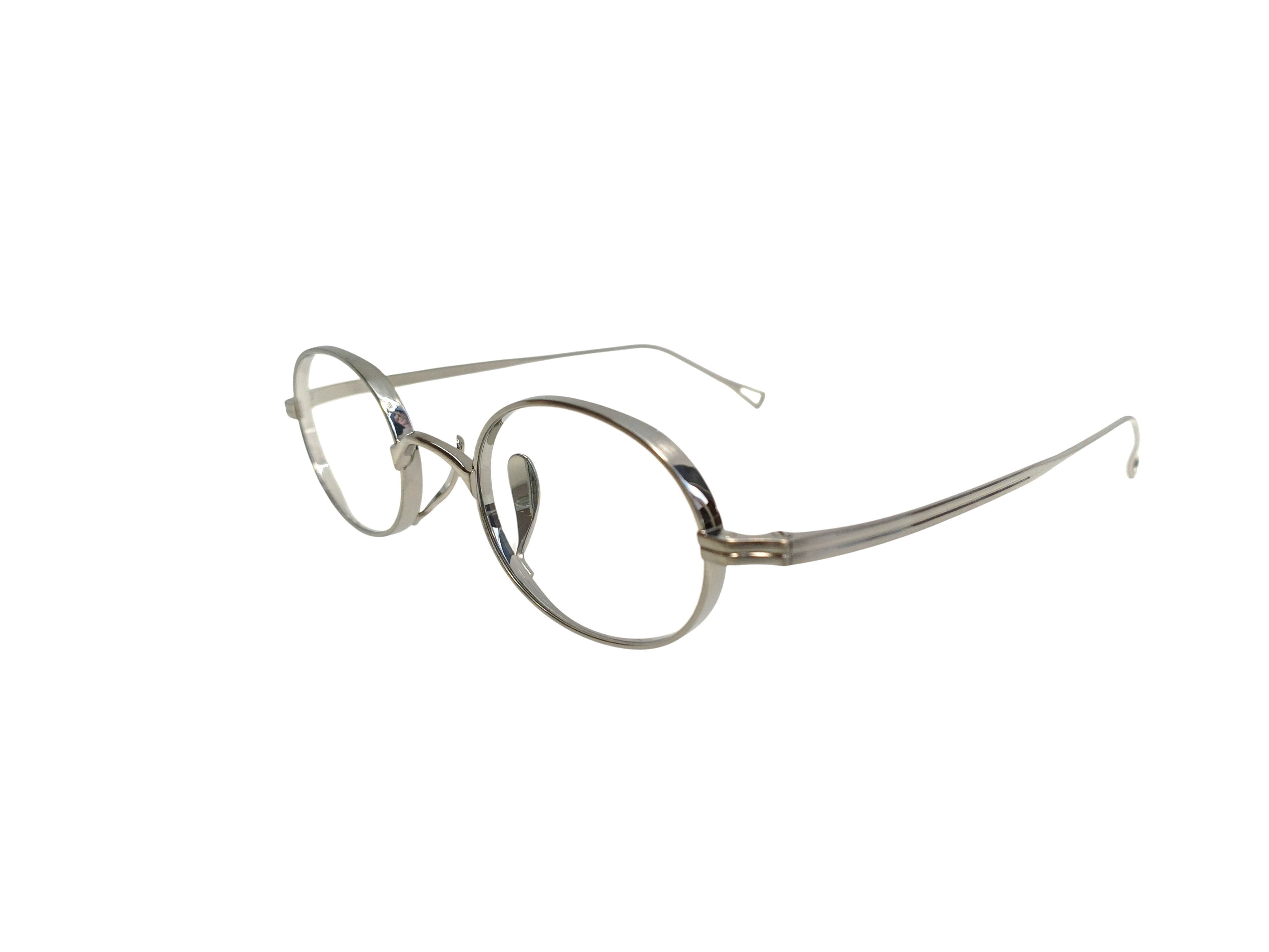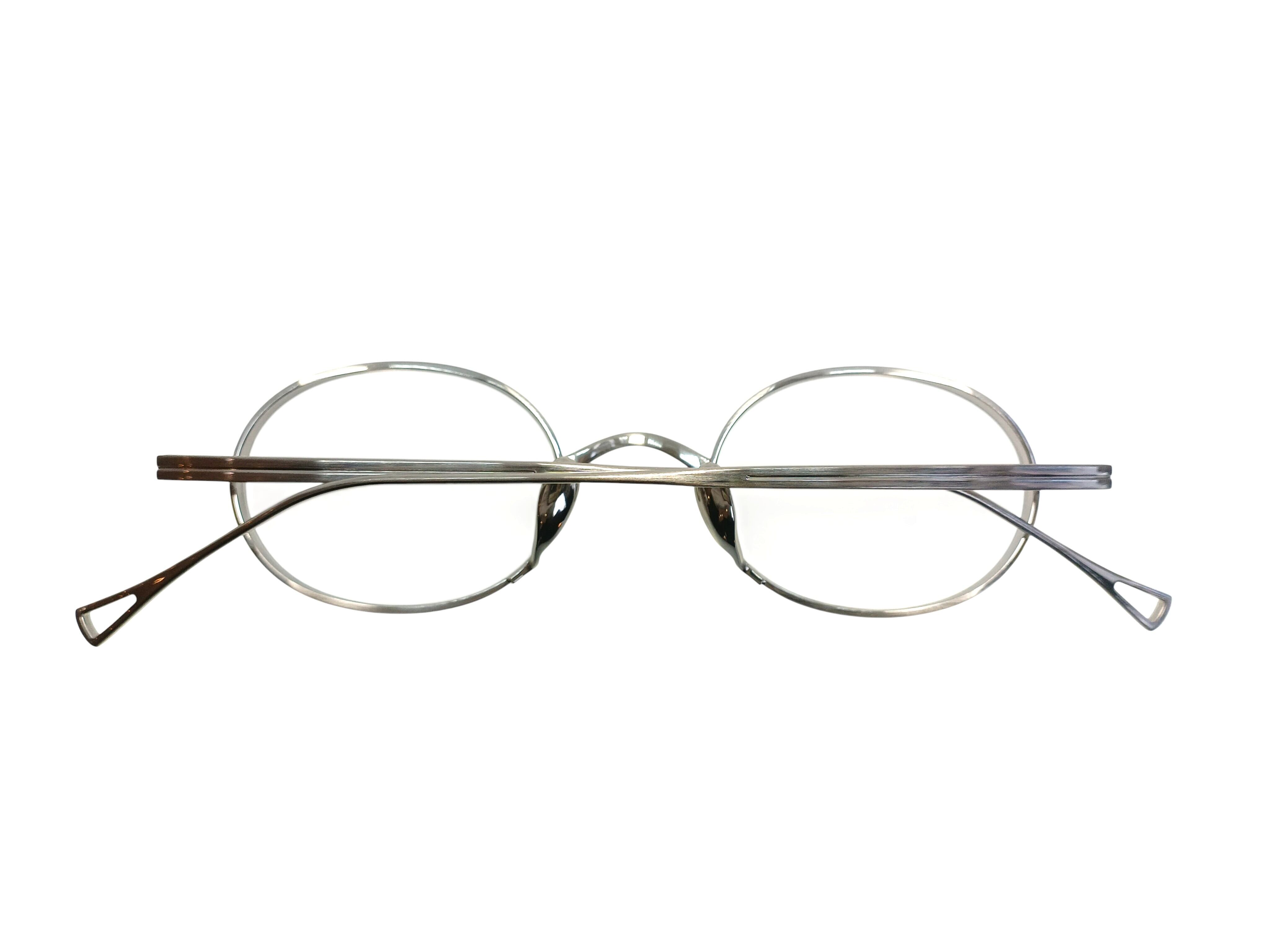オーバルシェイプに、カメマンネンの技術が息づくモデルKMN 9918。 厚みのあるレンズを自然に収める立体的なリム構造を採用し、部分的に施された抑揚によって、メタルでありながら表情のあるフロントを実現しています。 目立たないよう設計されたパッドアームと鼻パッドにより、掛けたときの印象はすっきりと繊細。 クラシックな形状でありながら、過度にレトロに寄らず、今の空気感で掛けていただけます。 主張を抑えたバランス感の中に、技術と美意識を宿した一本。