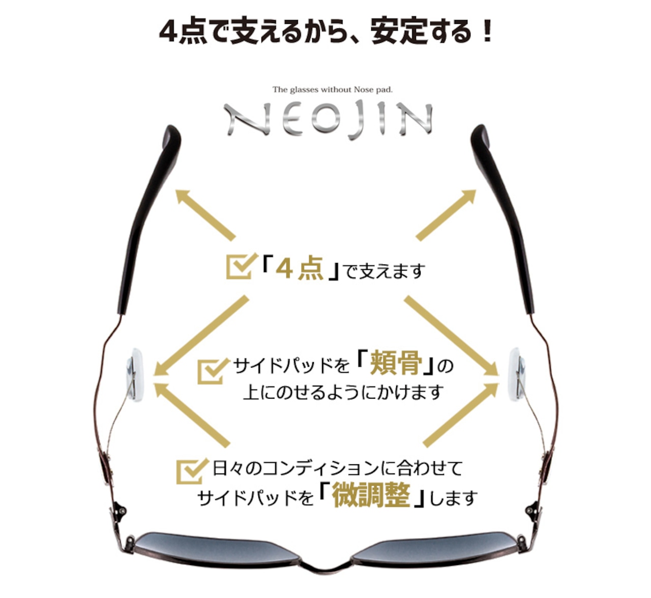 メガネを毎日掛ける人のことを考えて、快適な生活を送っていただくために……ネオジンはそんな思いを込めて開発しました。