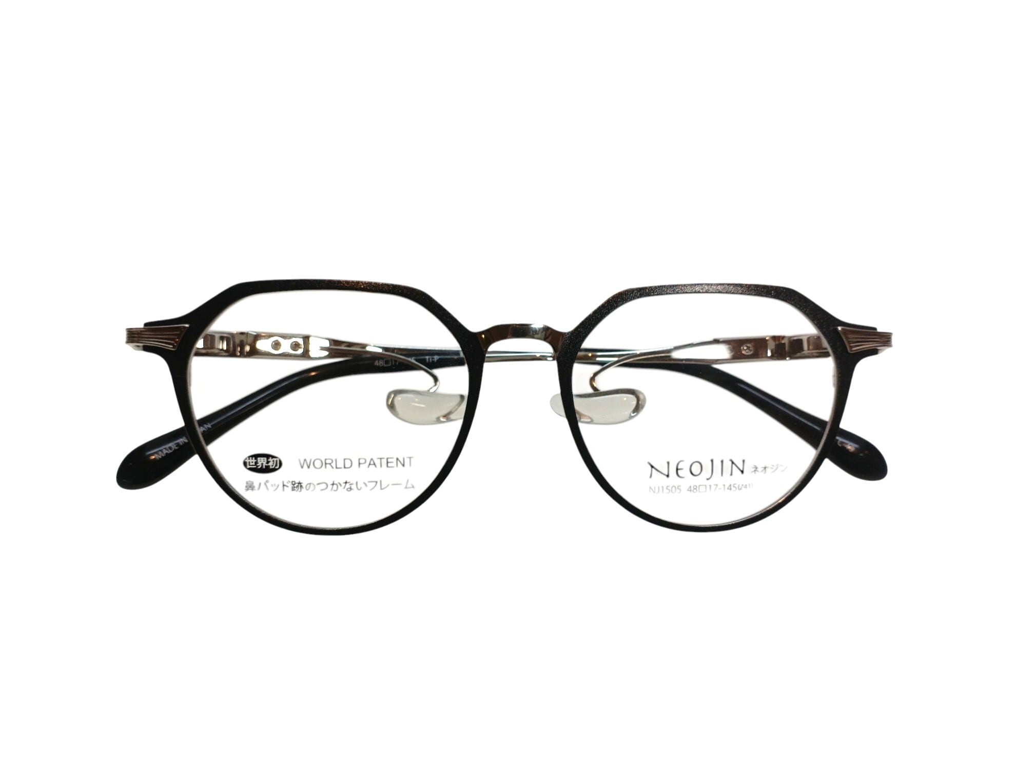 NEOJIN(ネオジン)NJ1505 C-40 48□17-145 本格眼鏡 鼻に跡がつかないメガネ 世界初!鼻パッドのないメガネフレーム メンズ レディース サングラス 度付き対応