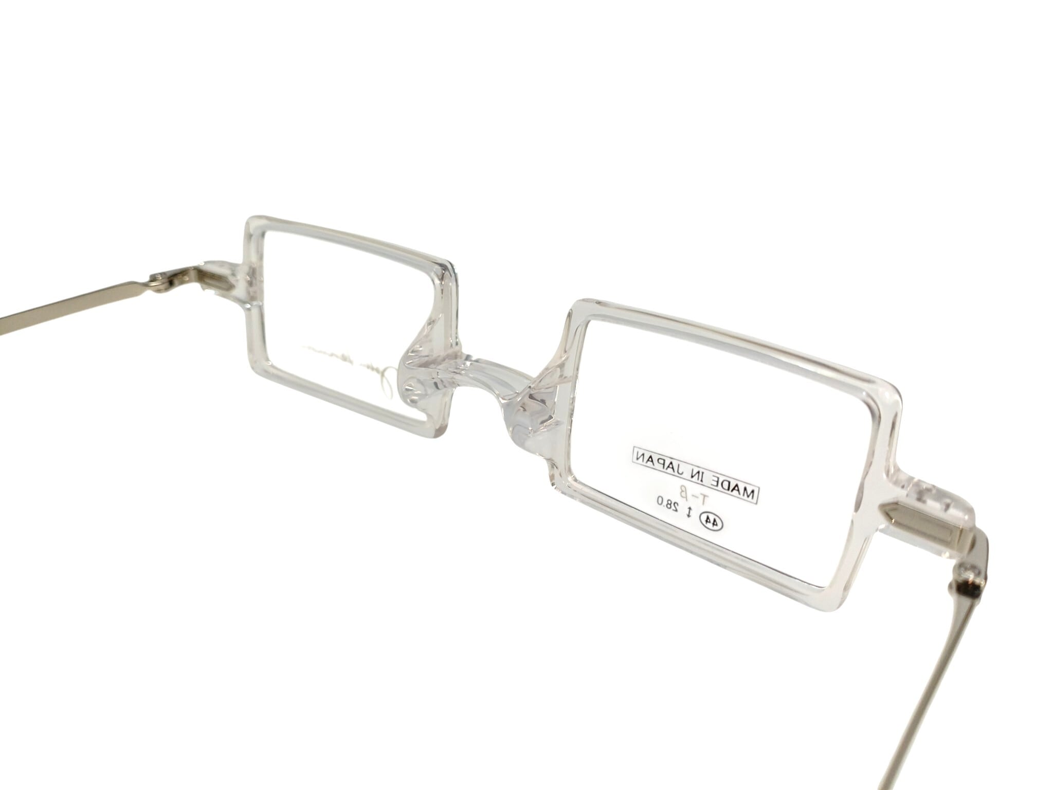 アセテートのフレームにベータチタンのテンプルを組み合わせ、スクエアなデザインがレトロで個性的な印象です。